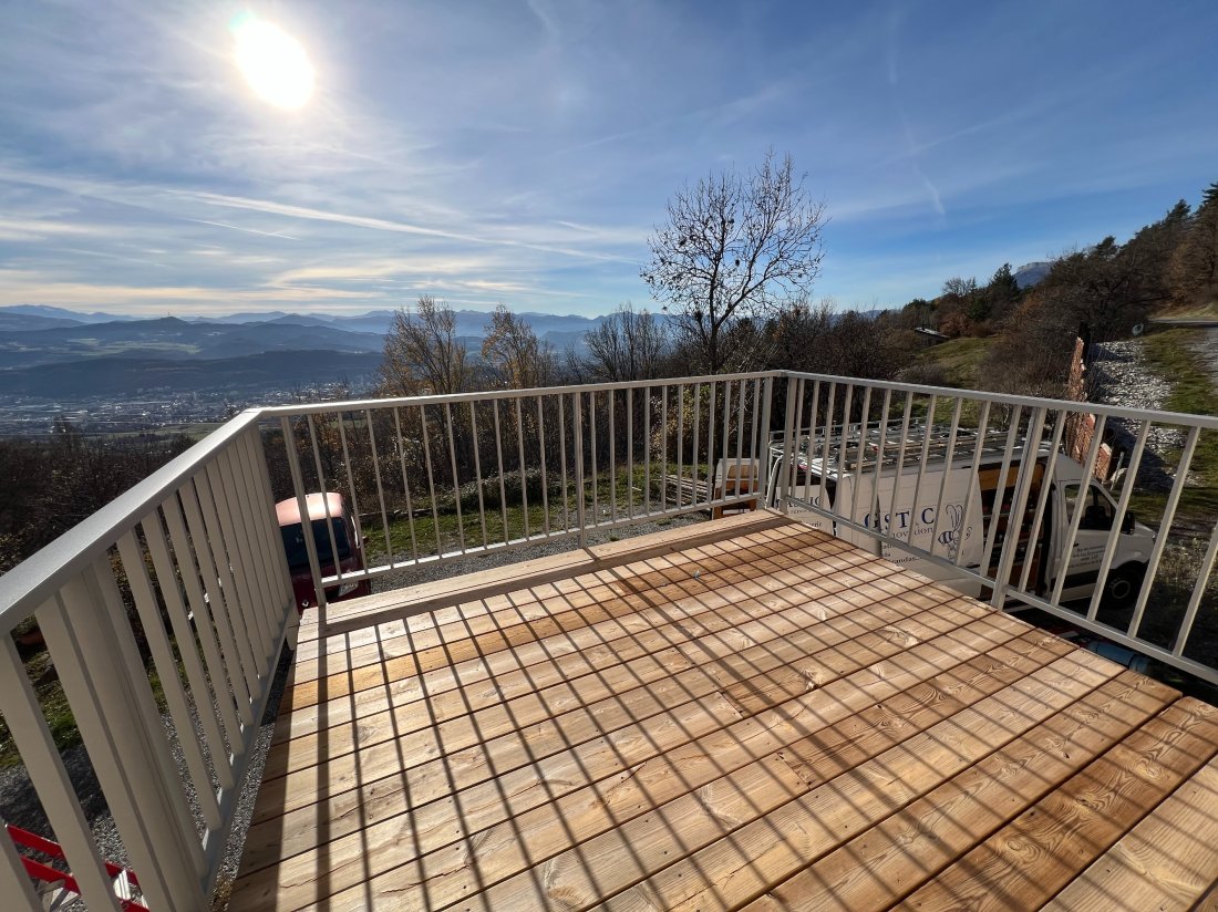 Installation de garde-corps en aluminium (couleur N2100) sur un balcon extérieur.