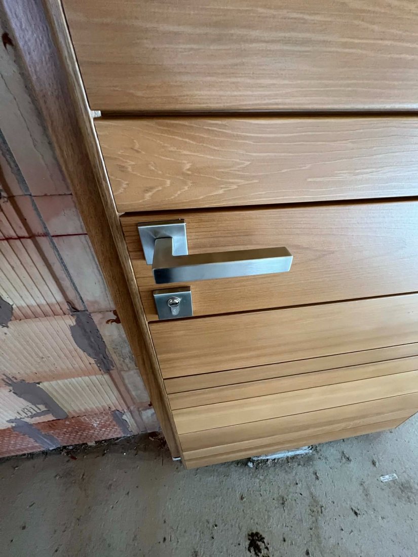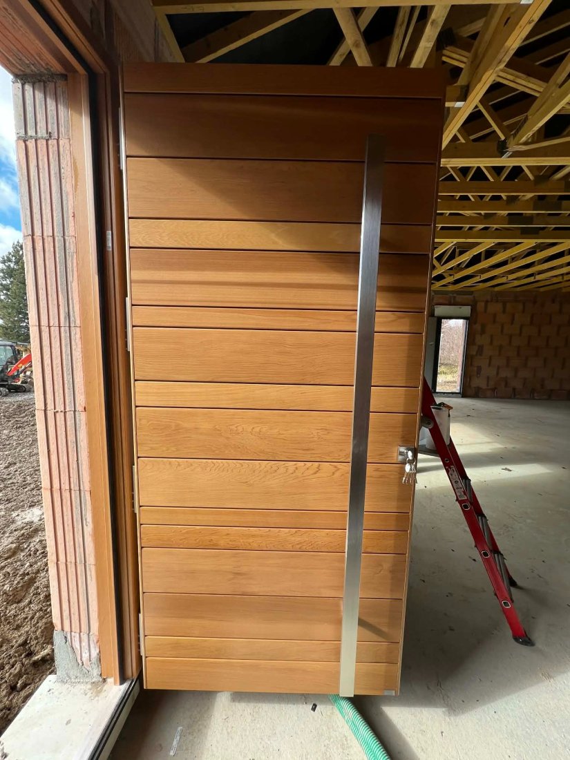La problématique centrale de ce chantier résidait dans la nécessité de choisir une porte à la fois design et résistante, capable de s’intégrer harmonieusement à l’architecture de la maison neuve. Il fallait également assurer une isolation thermique et phonique optimale, essentielle pour le confort des habitants et la performance énergétique du bâtiment. Enfin, la pose devait respecter des normes précises afin de garantir une parfaite étanchéité et une sécurité renforcée, tout en mettant en valeur le veinage et la teinte naturelle du Red Cedar.